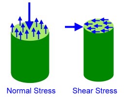 Whenever two materials rub against or slide over each other, there is shear. While normal stress results from the force applied perpendicular to the surface of a material, shear stress occurs when force is applied parallel to the surface of the material. A common example include the cutting of paper with scissors.