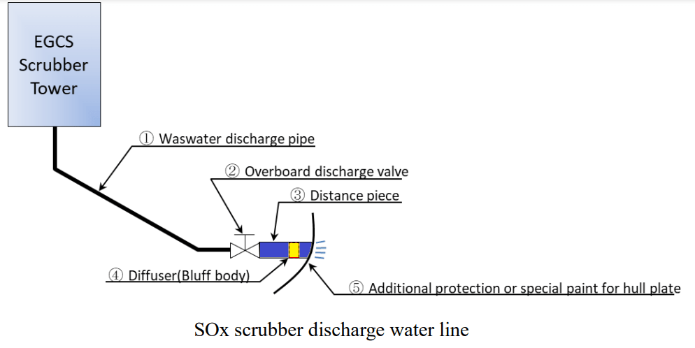 Currently, several reports for incidents that sea water leakage was detected from distance piece attached to hull on SOx scrubber discharge water line.