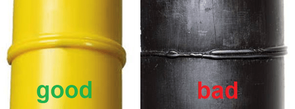 - The shape of the bead is rounded along the circumference of the pipe and the size is uniformly sized.
