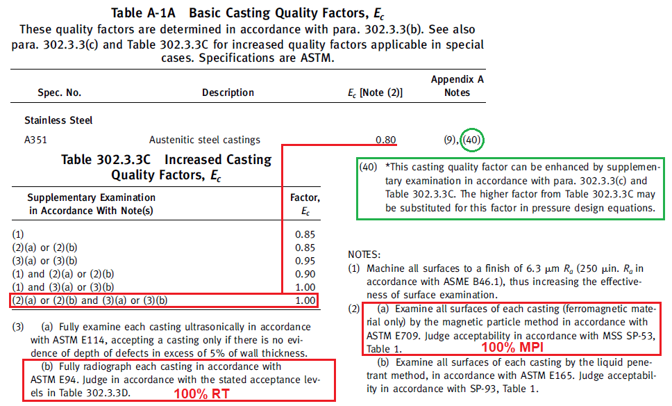 a) Casting Quality factor, E.g. from B31.3, 302.3.3 (b) and Table A-1A