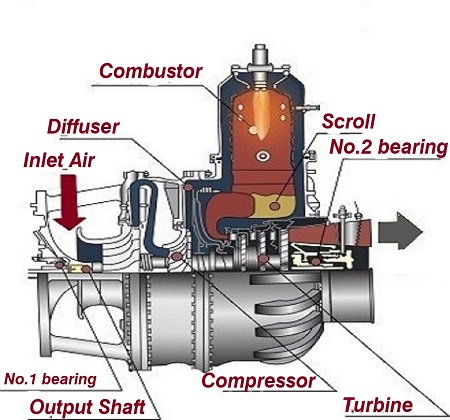 The purpose of this component is to raise the pressure level of the gas by rising the angular motion of the gas to rotate the gas.